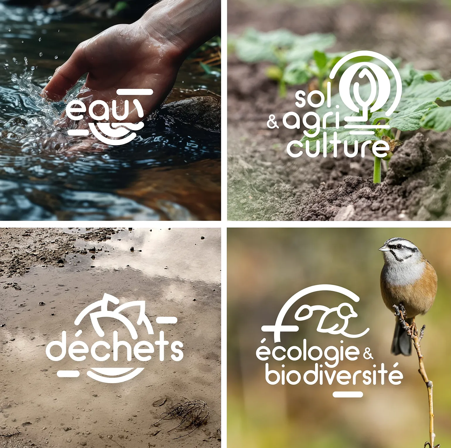 Des nouveaux logos thématiques & plus d’une centaines de pictos réalisés sur mesure, pour une nouvelle dynamique de présentation (plaquette, fiches, affiches, habillage graphique de tout élément interne…).