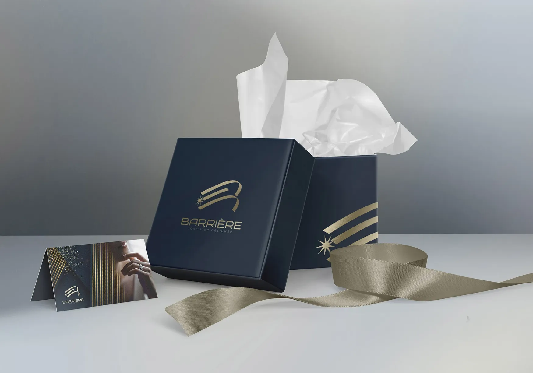 Pour cet atelier de Joaillerie Haut de gamme, un logo sous forme de monogramme quasi imperceptible, et un beau mouvement de forme, qui amène à l’éclat !