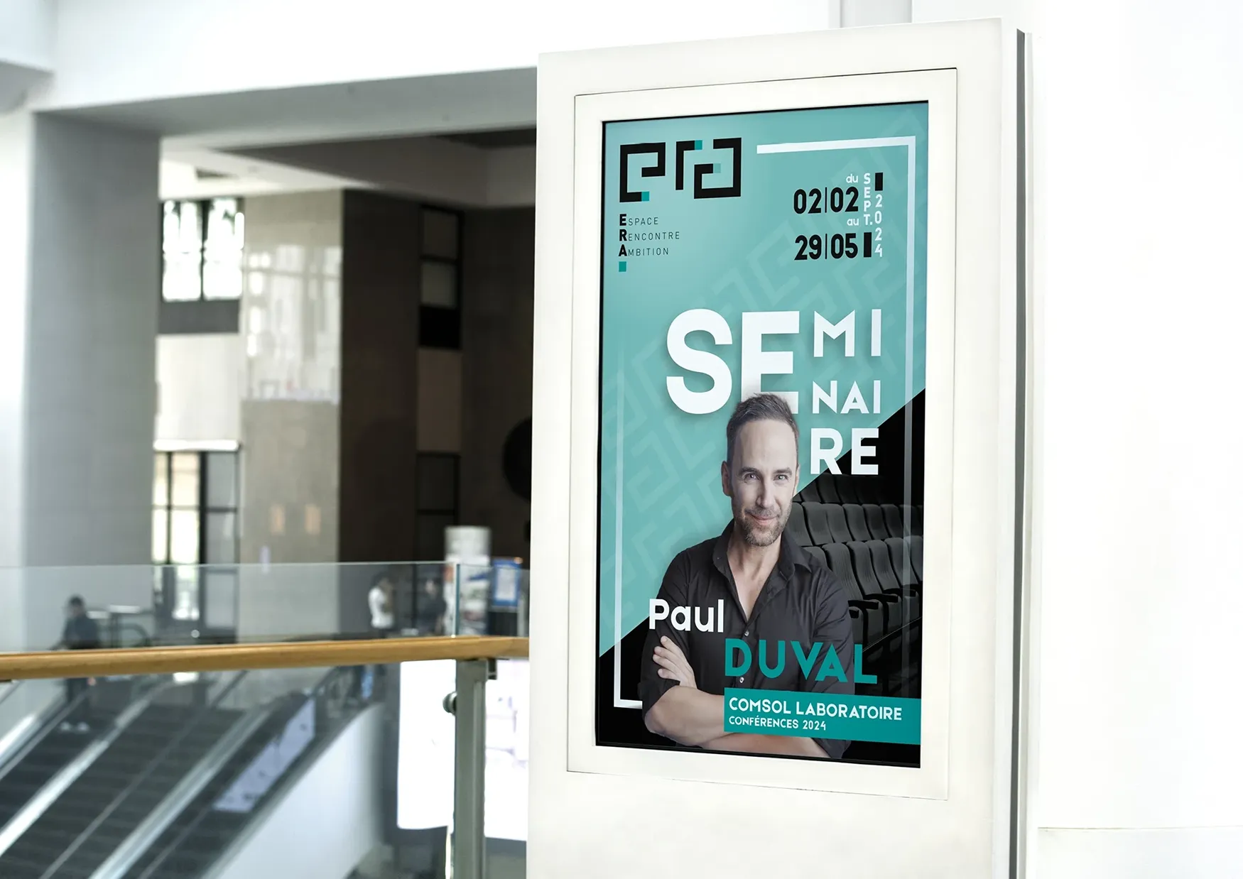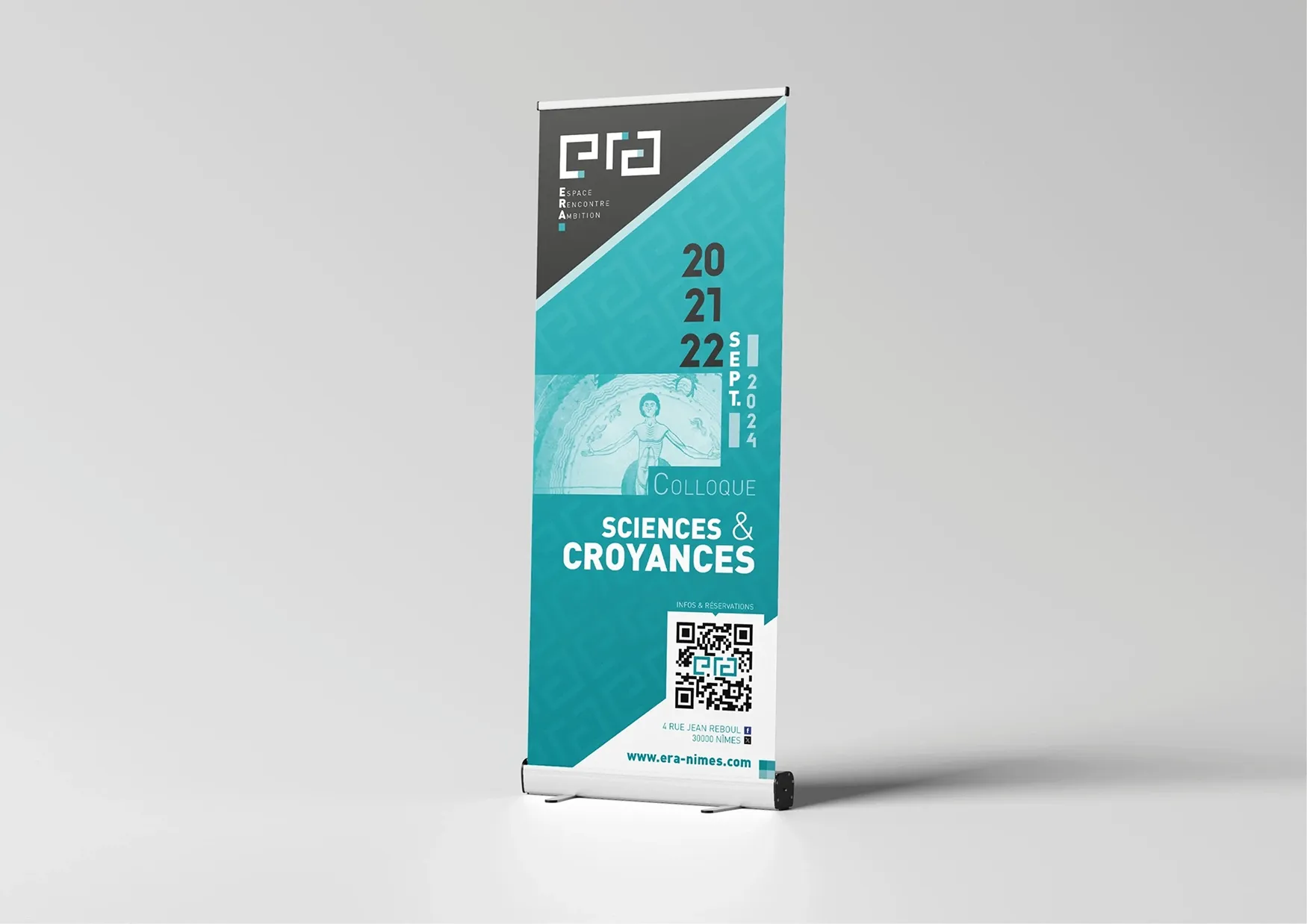 Une approche équilibrée, entre graphisme et monogramme, et un code couleur tourné vers la modernité, qui nous a permis de glisser vers de nombreuses applications de communication ( affiches, matériel évènementiel, présentation sur écrans, totem informatifs, etc…)