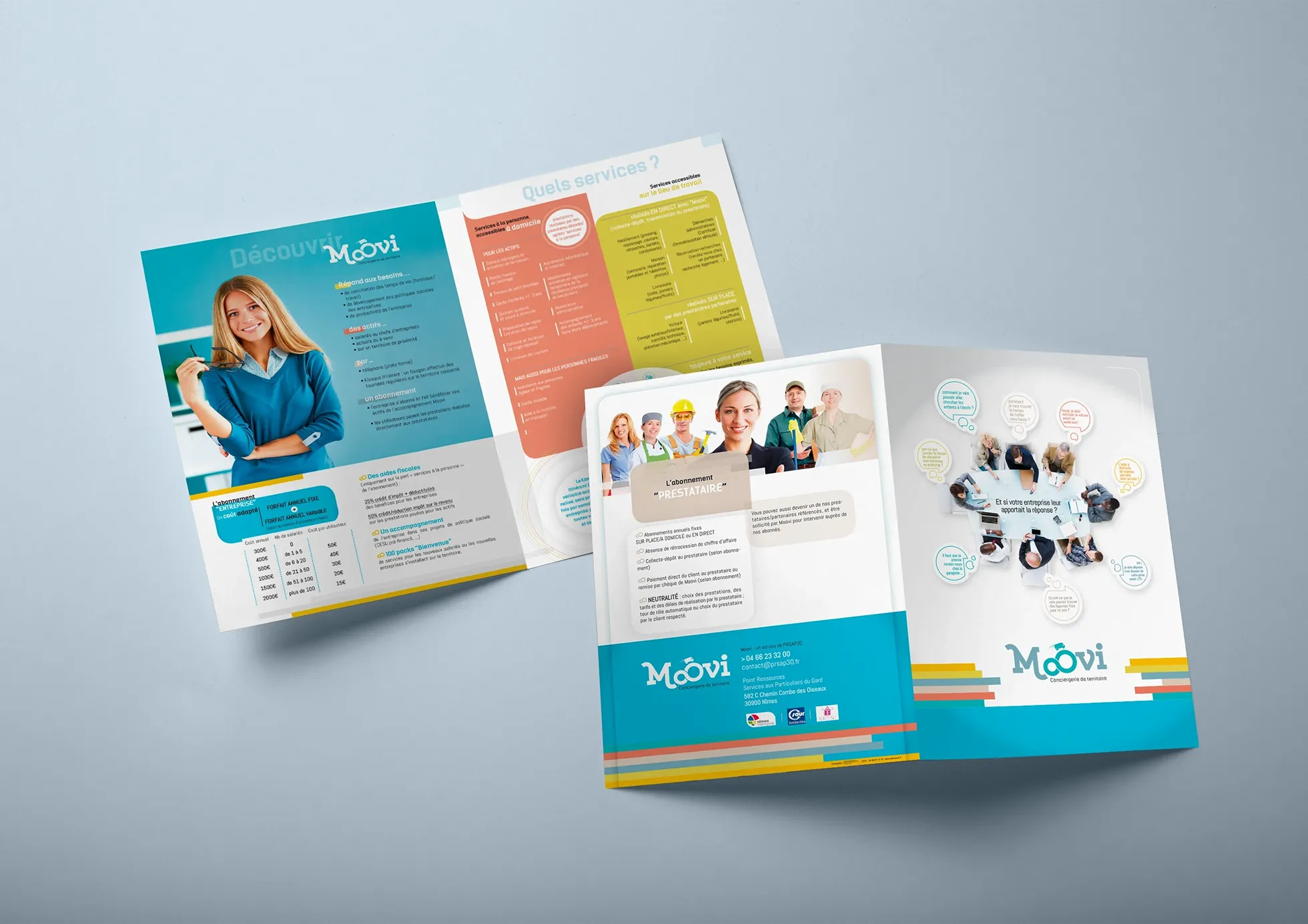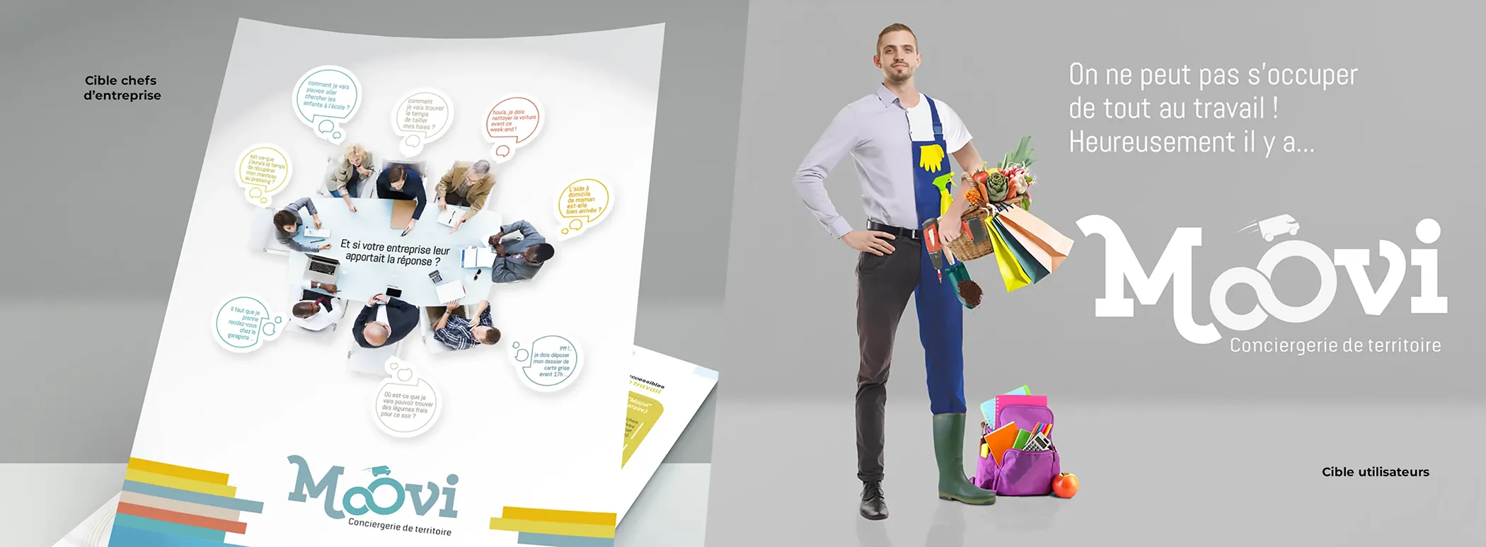 Après quelques réunions, afin de comprendre tous les aspects de ce service (financier, organisationnel, psychologie des 2 cibles), quelques « brainstormings », qui finissent quasi toujours par de vrais délires créatifs, et surtout de bons moments, le terme ‘Moovi’ est ressorti.